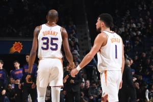 当被问及明日背靠背与火箭交手,但杜兰特因为个人原因(家中有事)确定缺阵,布克说道: “我希望他的家人一切安好,家庭是第一位的,但说实话,我很期待能与他同场竞技。”