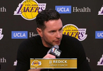 比赛最后时刻,湖人曾因狄龙-布鲁克斯撞击詹姆斯而获得1次技术罚球,最终詹姆斯执行了这次关键的罚球但没有命中。赛后,湖人主帅雷迪克接受了采访谈到了这一回合。