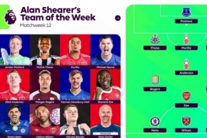 体育资讯11月26日讯 英超第12轮战罢,阿兰·希勒评本轮最佳阵容,皮克福德、埃泽、摩根·罗杰斯在列。
