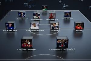 最佳阵容:多纳鲁马、阿什拉夫、帕乔、范戴克、门德斯、帕尔默、贝林厄姆、维蒂尼亚、佩德里、亚马尔、登贝莱