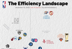 横轴代表进攻效率,越靠右越好,纵轴代表防守效率,越靠上越强。第一象限的球队多为发挥出色的球队,而在第三象限的球队通常为战绩比较糟糕的球队。