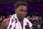 赛后,爱德华兹在场边接受了记者的采访。