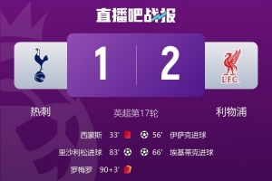 体育资讯12月21日讯 英超第17轮,利物浦客场2-1击败热刺。