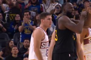 追梦回防过程中冲撞吉莱斯皮,吃到第一个技犯,随后挑衅裁判,“你再吹啊”!