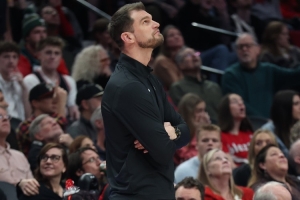 “开拓者在防守端频繁换防,但进攻节奏存在问题。当他们的进攻势头被打断时,比如拿到前场篮板球或对方得分时,重新组织起进攻似乎需要很长时间,有时甚至长达10秒。这导致他们的比赛节奏变得断断续续。例如,在对阵萨克拉门托的比赛中,他们在前四分钟内几乎组织不好二次进攻。然而,在第四节中,他们必须在节奏上保持一致性,最终,为了赢得比赛,他们需要通过突破迫使对方防守轮转,并且必须命中投篮以惩罚对手。不过,由于他们经常选择快速出手,因此很难在执行战术时保持平衡,尤其是面对那些喜欢换防的球队。”Steve Jones表示。