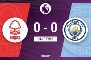 半场-曼城暂0-0诺丁汉森林 双方半场均0射正曼城控球率近7成